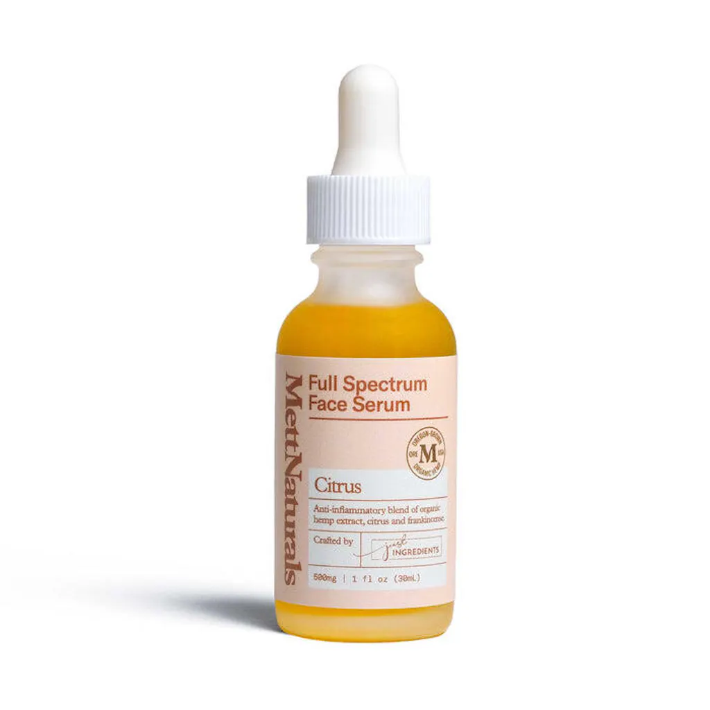 Hemos colaborado con Karalynne Call of Just Ingredients para formular este suero facial más vendido con extracto de CBD de cáñamo de espectro completo de Mett Naturals*. Conocido por sus propiedades antiinflamatorias, nuestro nuevo suero de CBD de cítricos ayuda a calmar y calmar la piel. Penetra en la piel más profundamente que otros humectantes para prevenir signos de envejecimiento y equilibrar la piel seca o grasa. Puede reducir cicatrices, arrugas, acné, manchas y está lleno de propiedades antibacterianas, antifúngicas y antiinflamatorias.